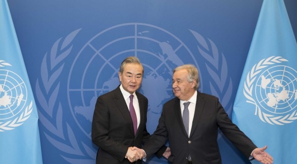 اكد وزير خارجية الصين وانغ بى خلال اجتماعه مع الأمين العام للأمم المتحدة أنطونيو غوتيريش أن الصين تدعم الأمم المتحدة إلى الاضطلاع بدور قيادي فيما يتعلق بالصراع الفلسطيني الإسرائيلي،كما تقف الصين بثبات إلى جانب السلام والضمير الإنساني والقانون الدولي.
