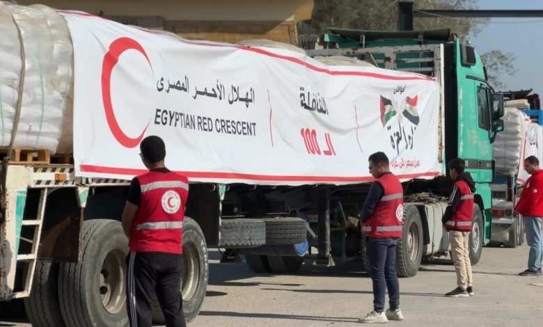 الهلال الأحمر المصري يعزز دعم غزة بمساعدات غذائية وطبية وشتوية عبر قوافل «زاد العزة»