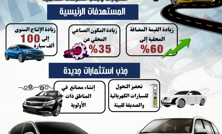 • زيادة المكون الصناعي المحلي المستهدف في صناعة السيارات عن ٣٥%
