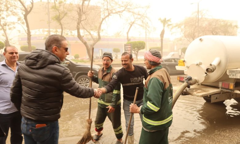 حرص المحافظ علي تقديم الدعم والاشادة لفرق العمل الميداني من العمال وفرق شفط مياه الأمطار بالأحياء والمراكز تقديرًا لجهودهم وتواجدهم المستمر والعمل في تلك الظروف الجوية بما يضمن استمرار الأداء بكفاءة وسرعة الانتهاء من رفع تجمعات المياه وتحقيق السيولة المرورية.